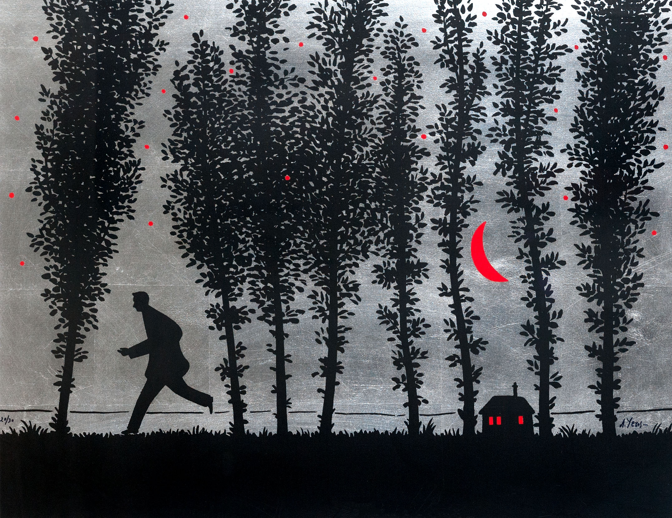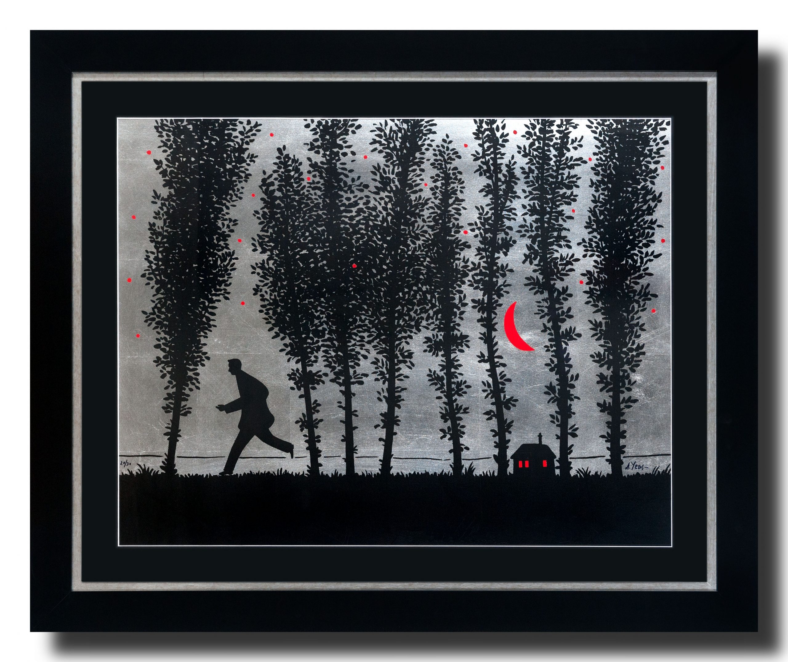 Technique: Hand painted silkscreen with silver leaves