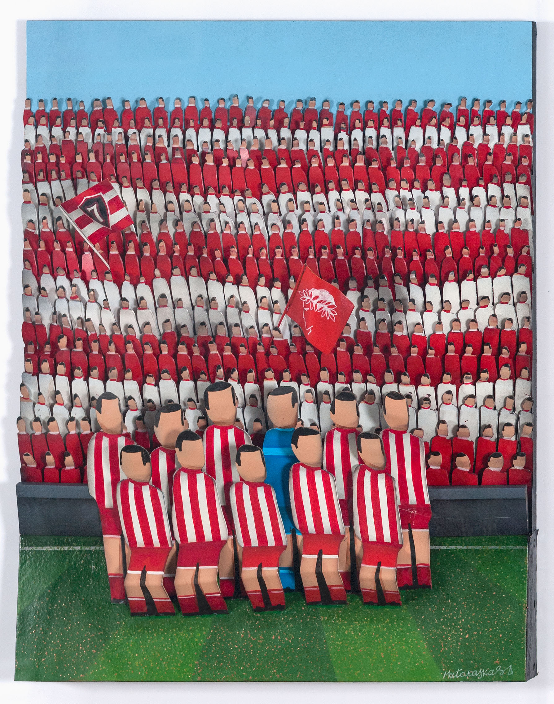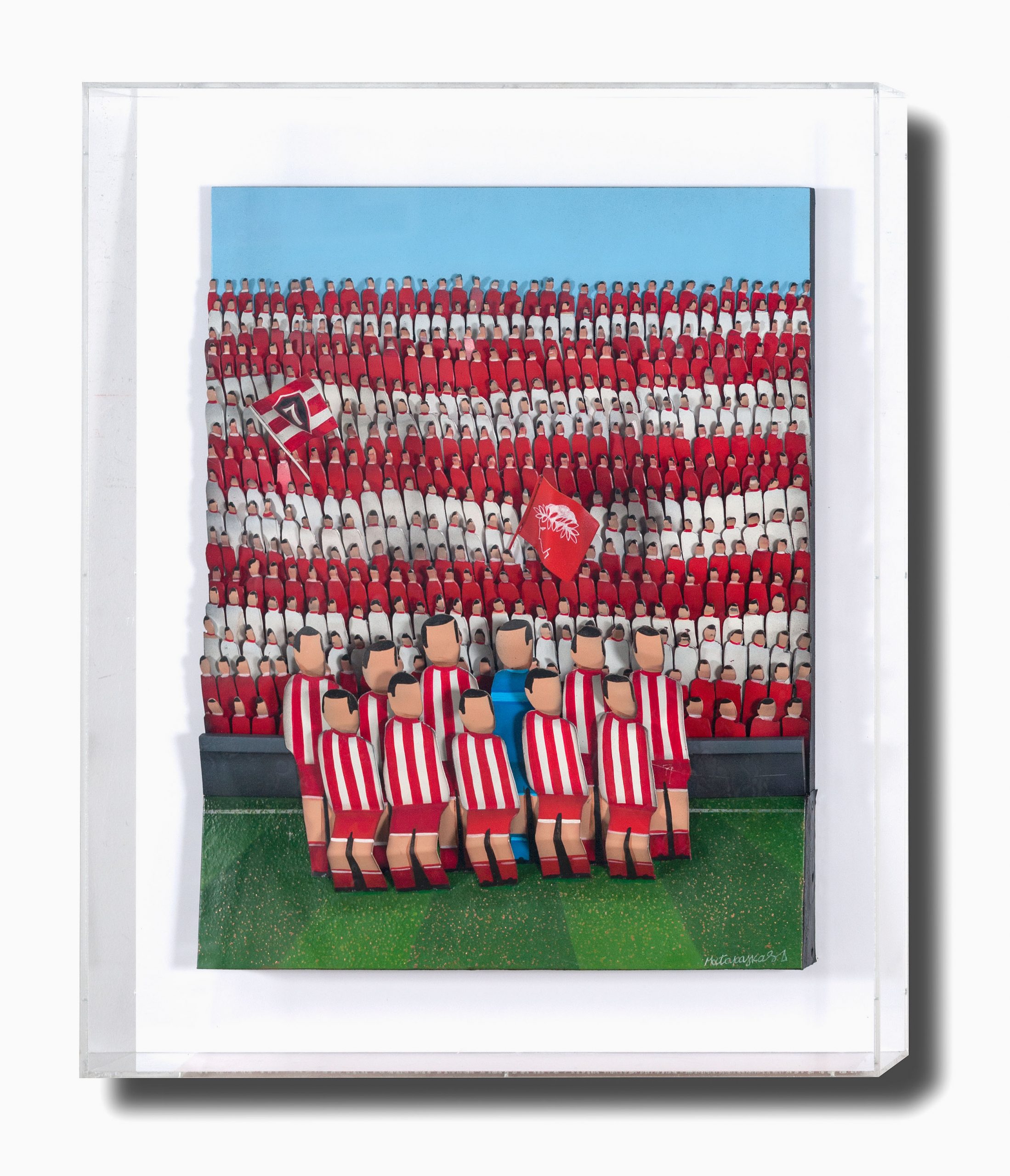 Technique: Hand painted aluminium wall sculpture with plexiglass showcase