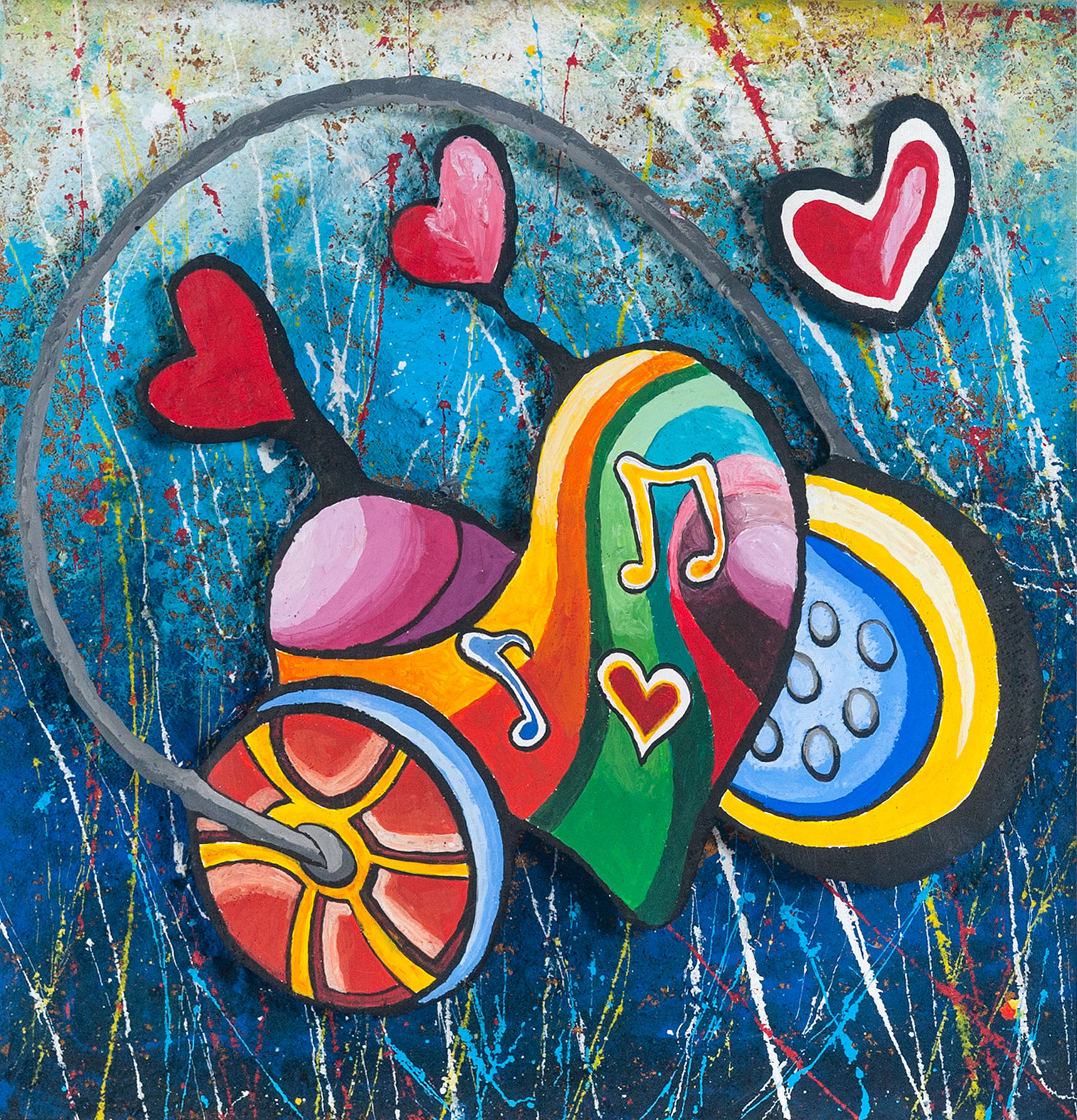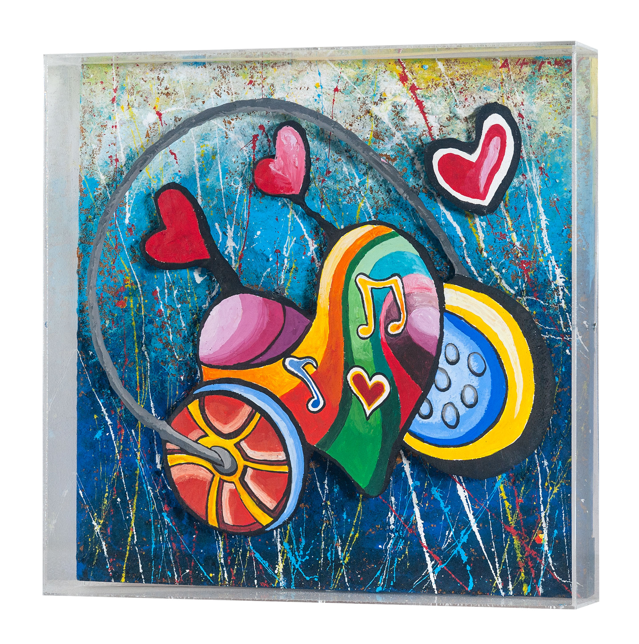 Technique: Mixed media wall sculpture on wooden panel in plexiglass box