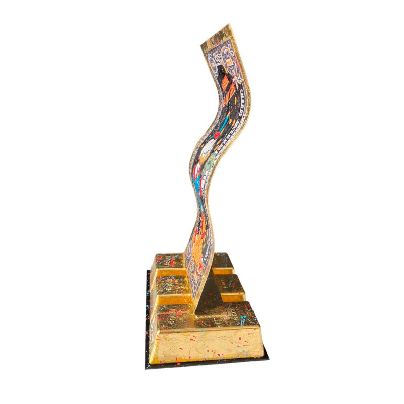Technique: Mixed media, aluminium dollar, bars with gold leaf patina