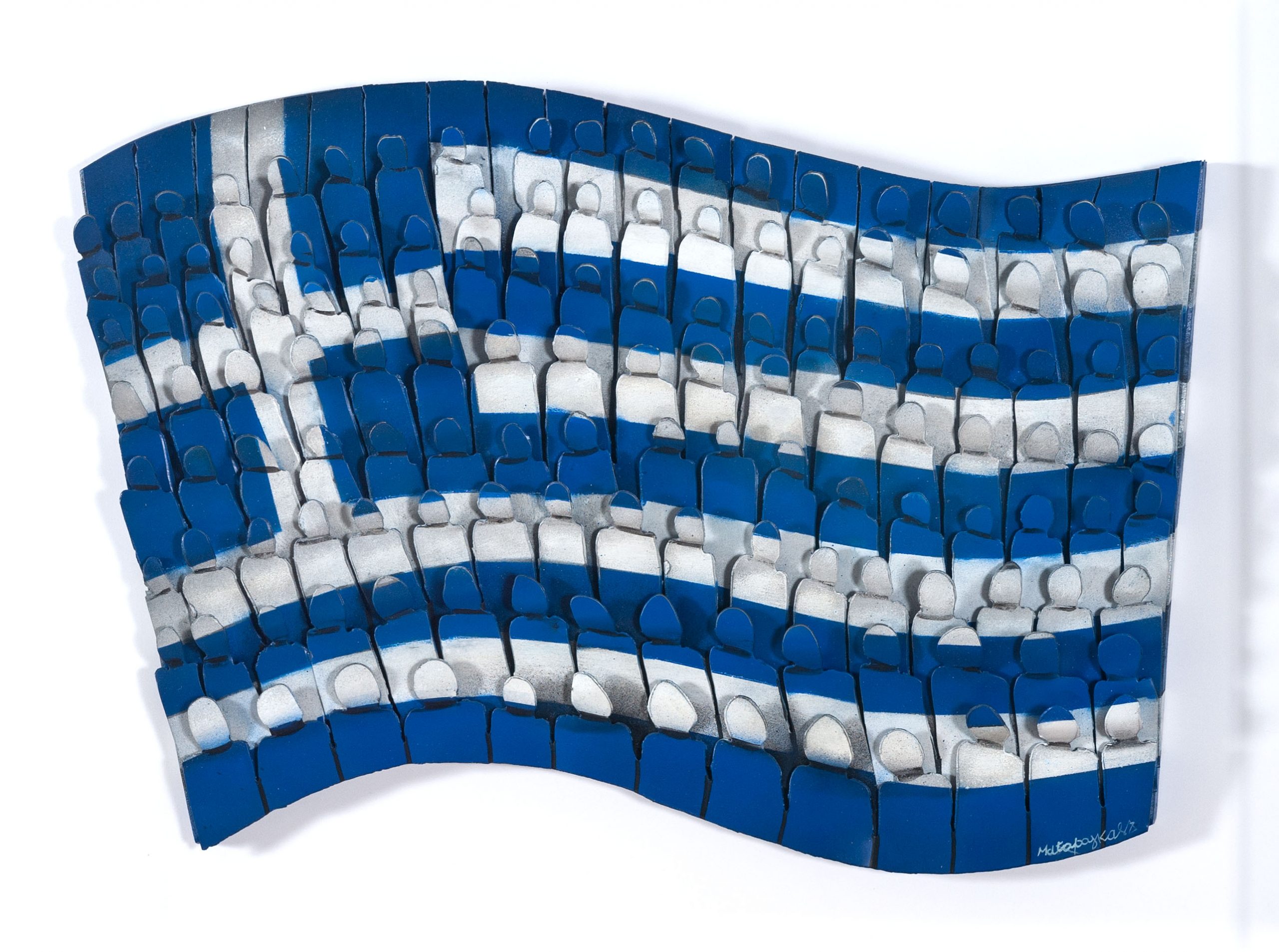 Technique: Hand painted aluminium wall sculpture in plexiglass box